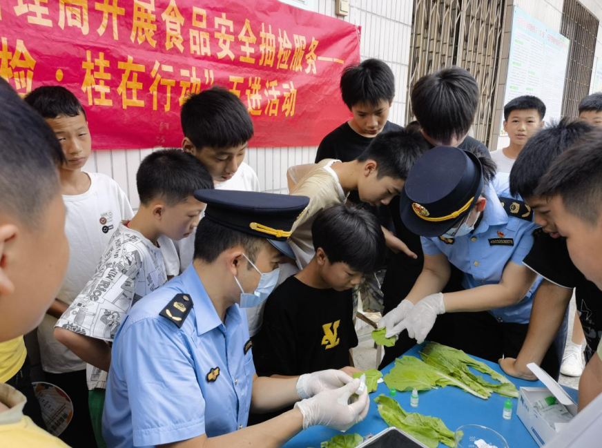 为进一步加强互动体验,兴安县市场监管局结合严关镇到严关镇初级中学开展食物平安进校园宣传勾当,向师生们发放宣传材料,普及食物平安学问,并组织学生代表参取食物抽样快速检测全过程,正在监管人员指点下,同窗们亲手操做快检设备,对食堂食材进行现场检测,零距离感触感染食物平安监管的严谨性取科学性,进一步激发其参取食物平安监视的热情。勾当还设置有学问问答环节,标题问题涵盖食物平安根基准绳、食物选购和辨认、平安防备和风险识别、法令律例等内容,吸引超300人次学生参取。